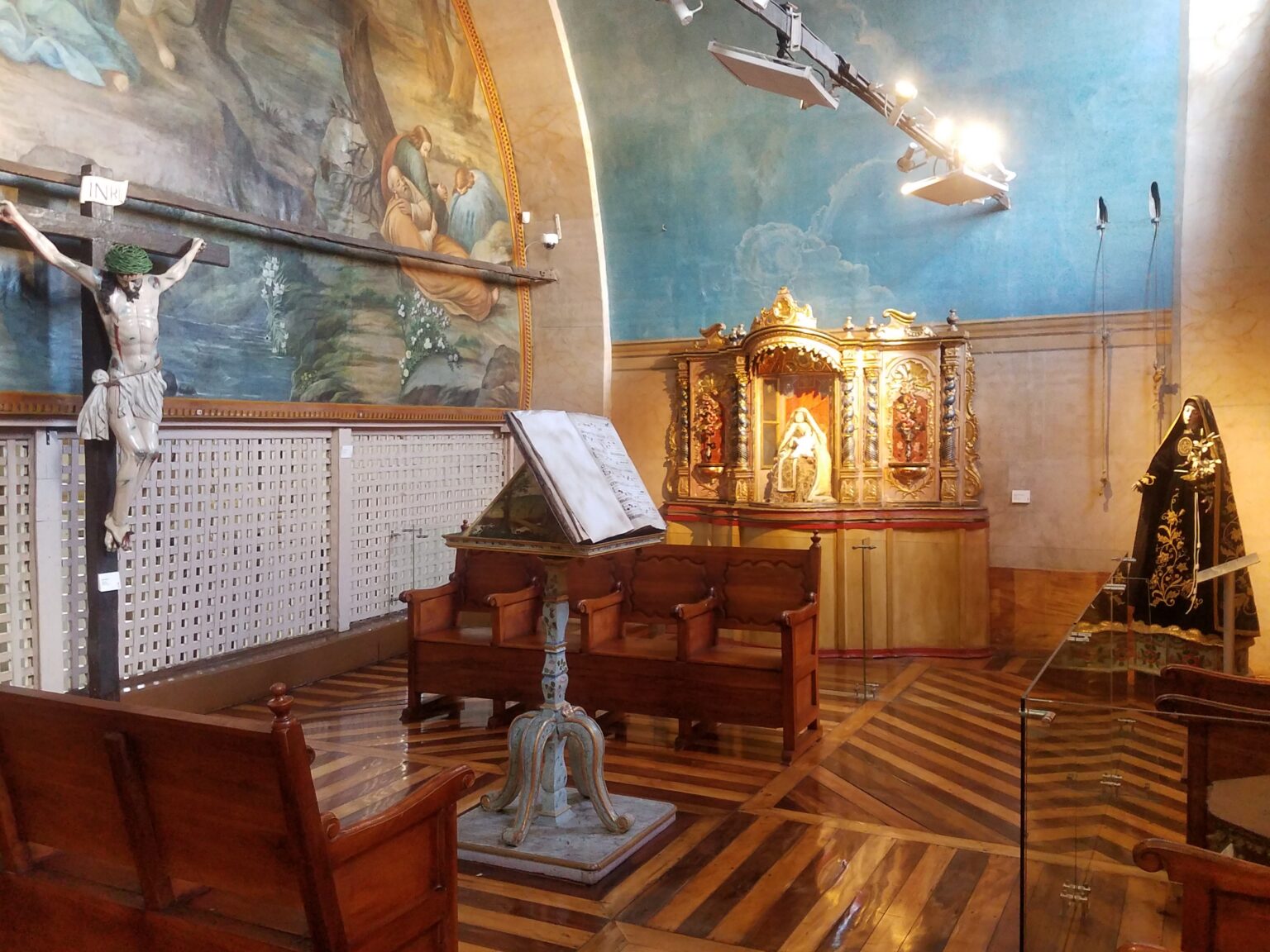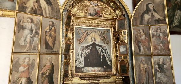 The main cloister surrounds the Patio de los Naranjos (Orange Tree Courtyard), decorated with sculptures and a triptych of the Virgin of Carmen from the Quito School. There is a room dedicated to Santa Marianita de Jesús, the refectory with 17th-century works and anonymous 18th-century murals. The Upper Choir, formerly the saint’s room, houses portraits and scenes from her spiritual life.