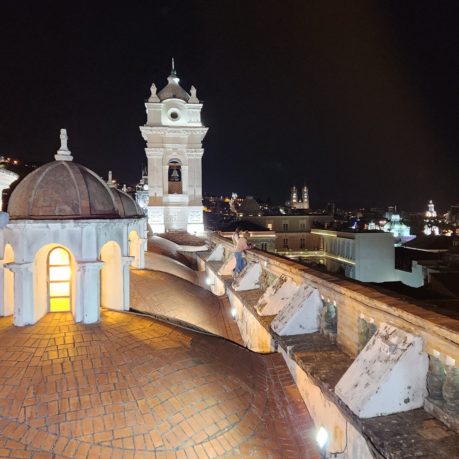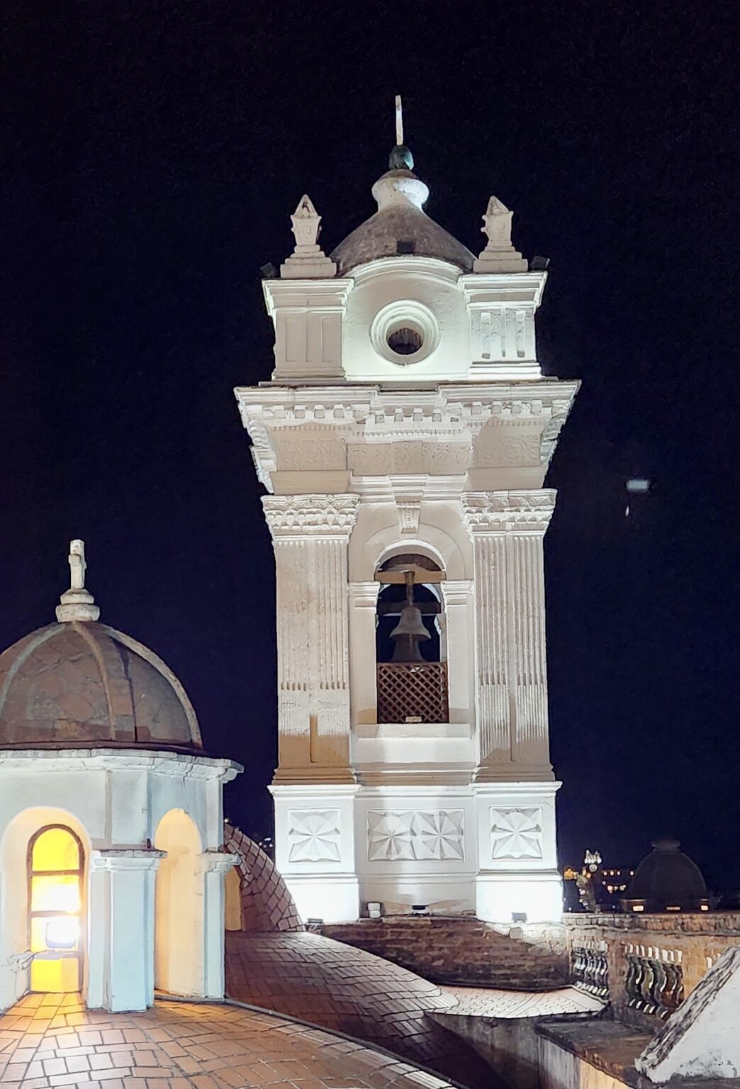 As Ximena Escudero Albornoz describes in her book «Conventos Quiteños,» we can literally transcribe the aptness of the concept: «A walled city within a city» would be the most appropriate phrase to describe the monastery of Poor Clare nuns, because within its walls—which extend from the street to the Pichincha quarry (to the north) to the northern slope of the «Gallinazos» ravine or Jerusalem (to the south)—its church, covered by a veritable forest of cupolas that emerge from the great dome that covers the central nave, its three cloisters, its chapels, its bread oven, its enormous wooded garden, its pigsty, its cemetery, and countless other service dependencies, have given it complete autonomy.
