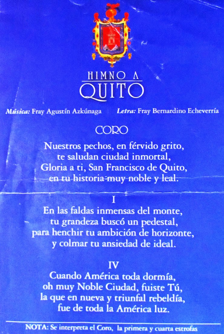 Su Majestad, el emperador Carlos V del Sacro Imperio Romano Germánico y I de España, mediante Real Cédula, del 14 de marzo de 1541, expedida en Talavera, otorgó el escudo de armas y el título de ciudad a la Muy Noble y Muy Leal ciudad de San Francisco de Quito.