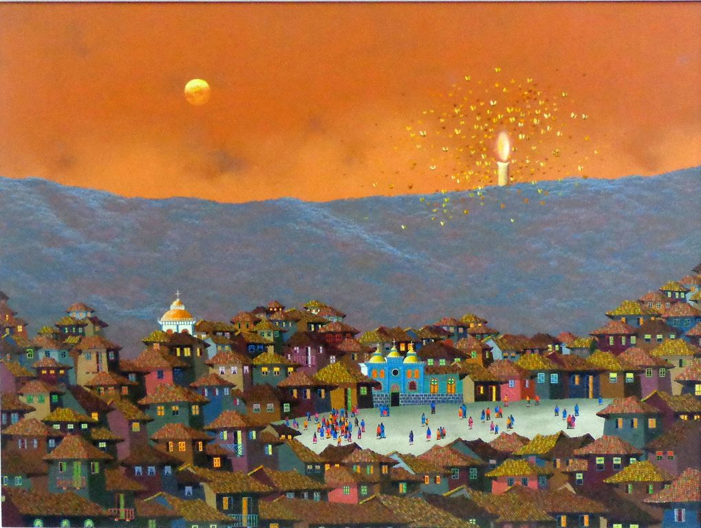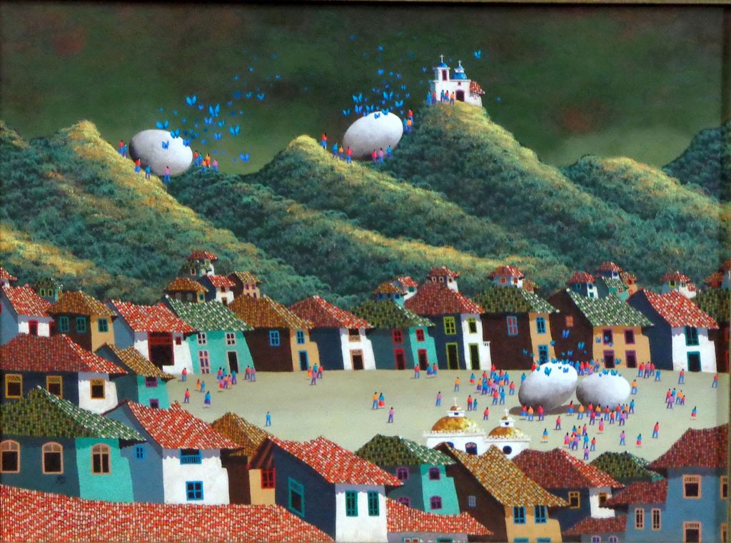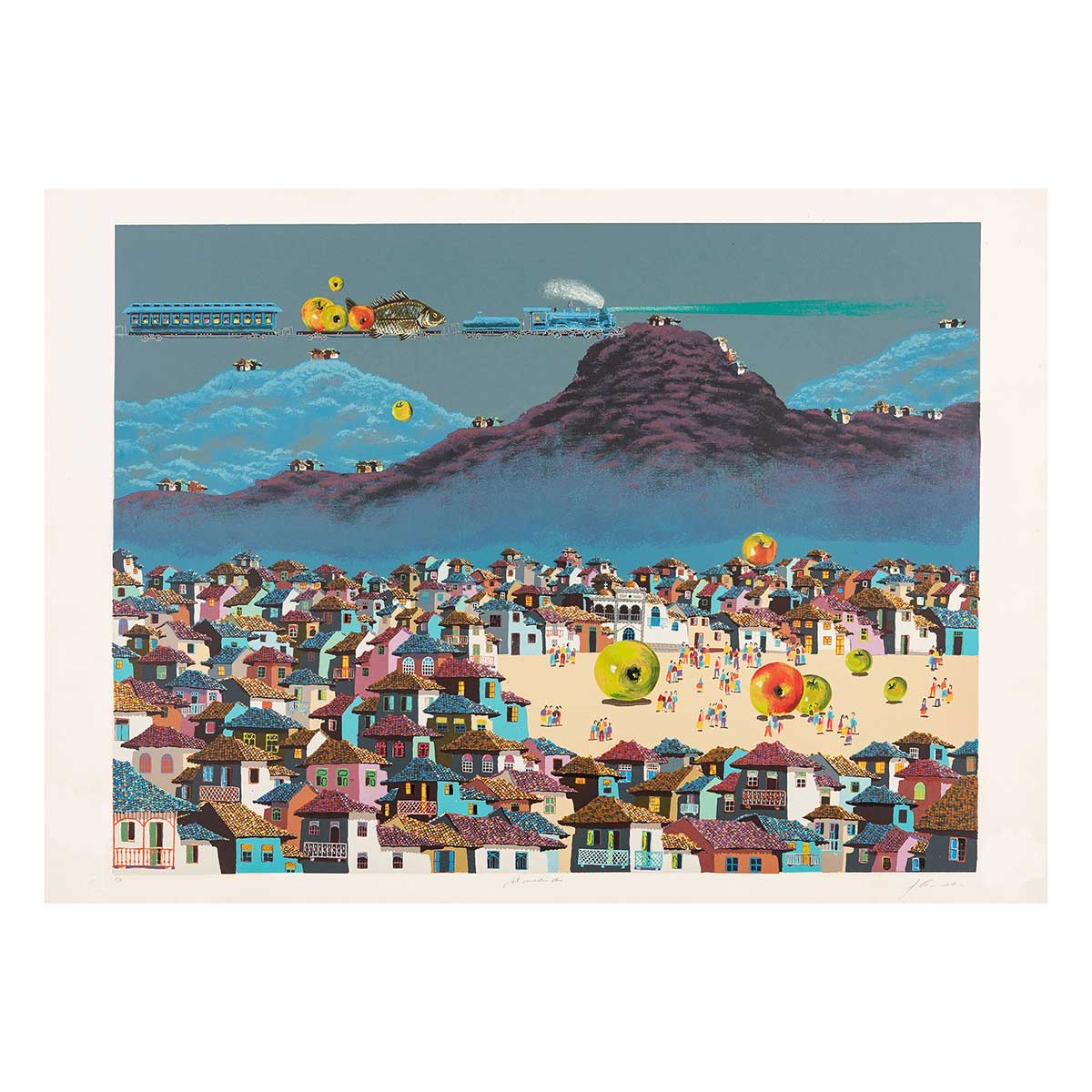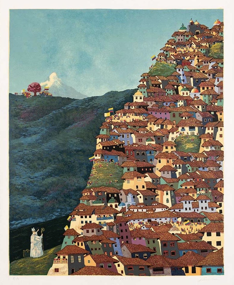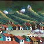 Gonzalo Endara Crow, born in Bucay in 1936, was one of the most prominent Ecuadorian artists of the 20th century. His work, recognized by critics and the public, is framed in magical realism, where Andean reality merges with fantastical elements such as flying trains, giant fruits, and bells suspended in the air. With intense colors and dreamlike forms, his painting reflects the geography, culture, and mythology of the Andes.