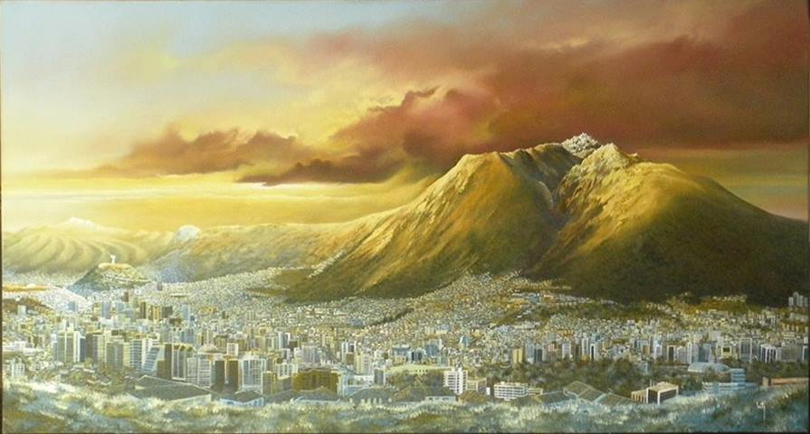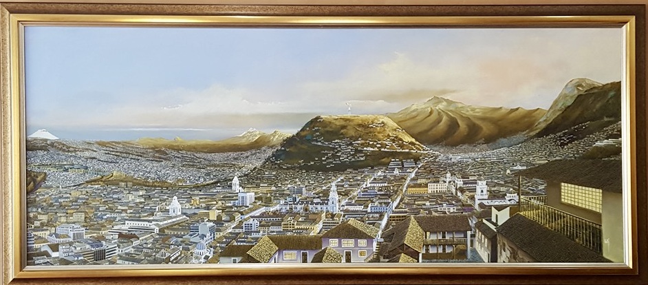 Throughout his artistic career, Inti has explored different currents and themes, leading to his most representative series: The Presence of Human Beings in Nature. This work seeks to portray the most significant landscapes of Ecuador, the Andes, and other regions of the world, capturing the relationship between the urban and the natural from an almost aerial perspective. For the master, art is discipline, research, and a commitment to giving the best of himself in each creation.