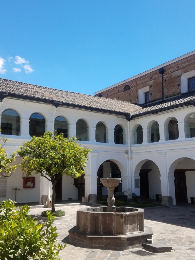 Ximena Escudero tells us verbatim: In 1654, the surveyor Ruales made the essential adjustments to adapt the building and its surroundings to religious use; he respected the built area of the donated dwelling, which was connected to the new convent spaces through the regular gatehouse. This master builder built the original chapel, a small church whose narthex faced the current Rocafuerte Street and its presbytery faced the old house. In 1656, with the purchase of the surrounding properties, the monastery and temple were definitively built, under the design and direction of the Jesuit architect Brother Marcos Guerra, who collaborated with Father Silvestre Fausto, master builder of the Society of Jesus.