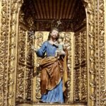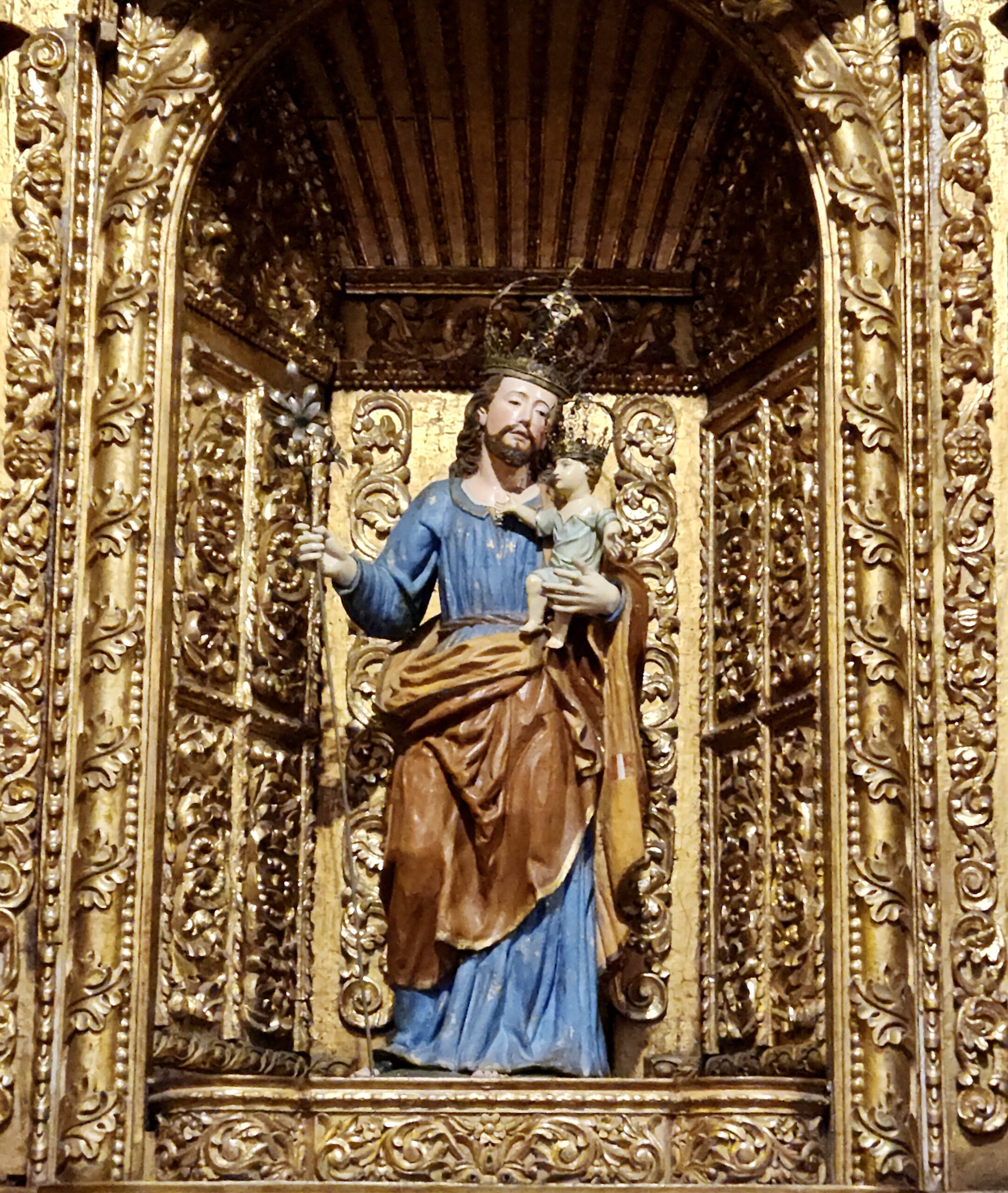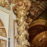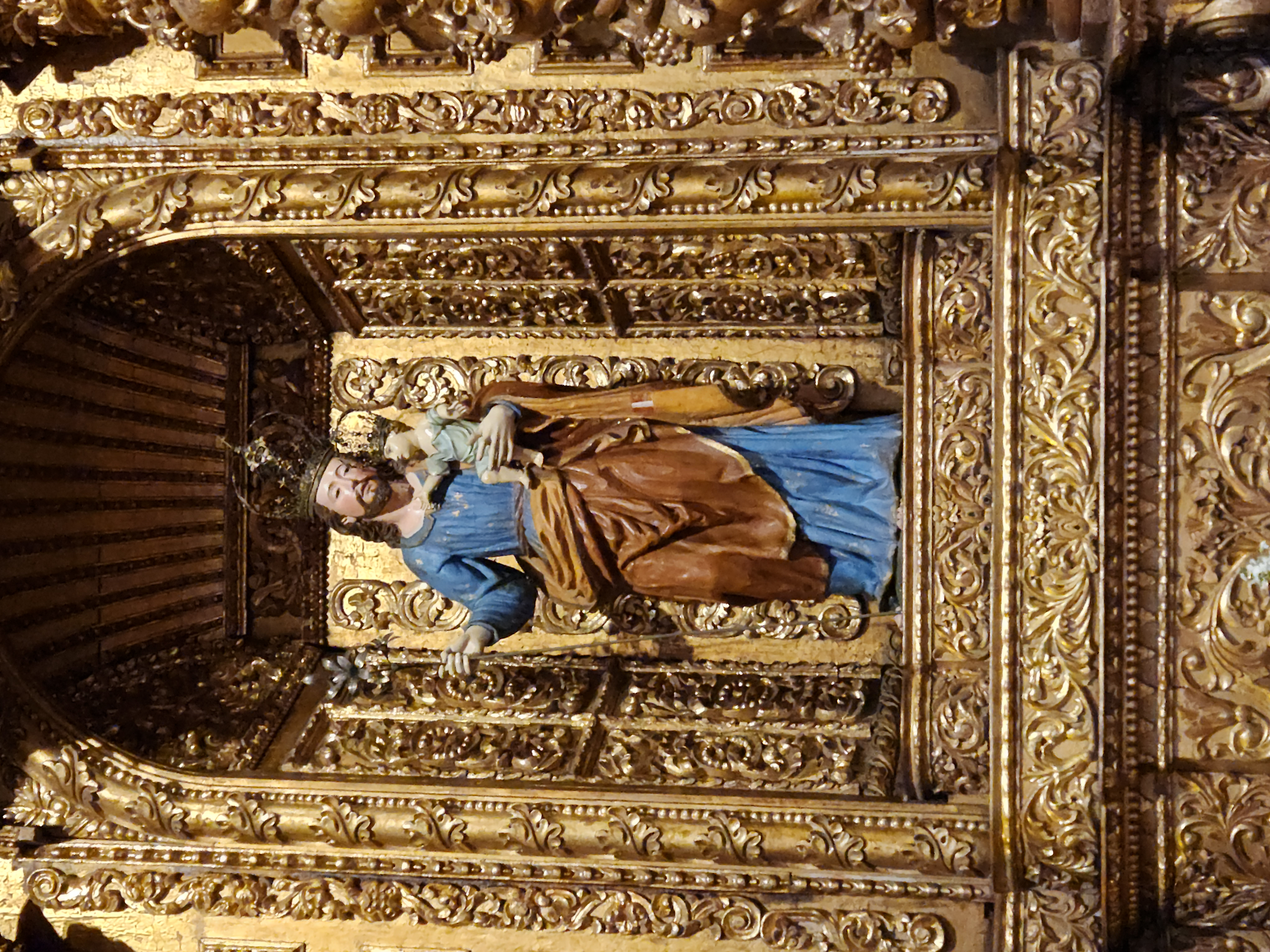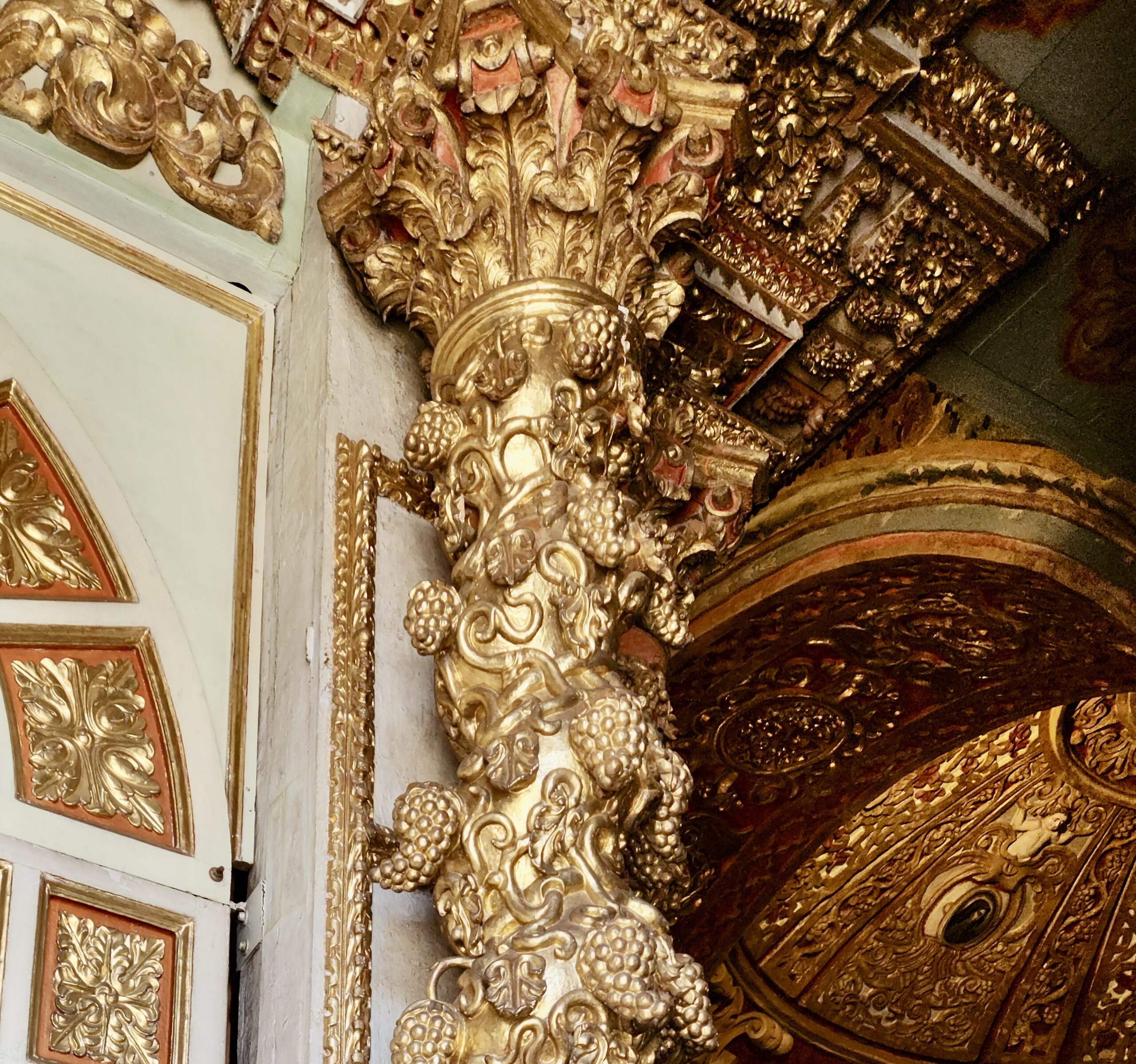 Las columnas salomónicas, de la mampara están preciosamente decoradas, fondo color rojo y doradas