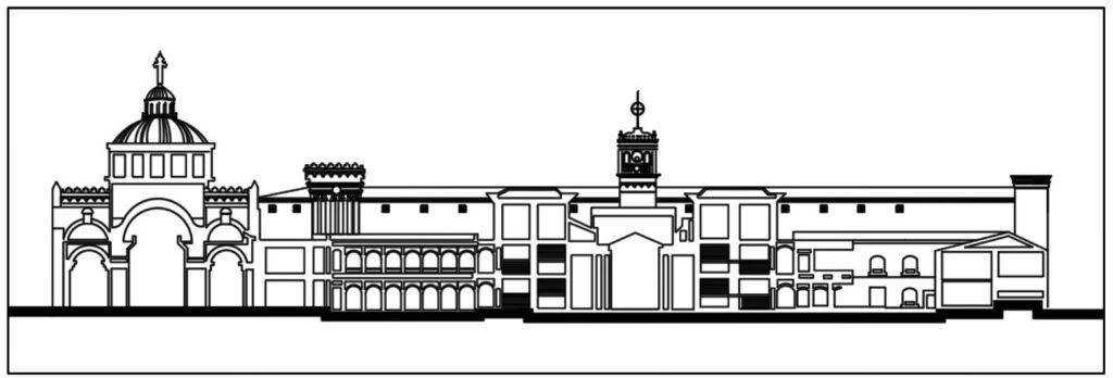 This Jesuit complex included the San Ignacio de Loyola Residence, the San Luis Seminary, the Colegio Máximo, the University of San Gregorio Magno, and the Maynas Mission Office. The Colegio San Gabriel operated from 1862, and the Colegio San Luis Gonzaga for 42 years.