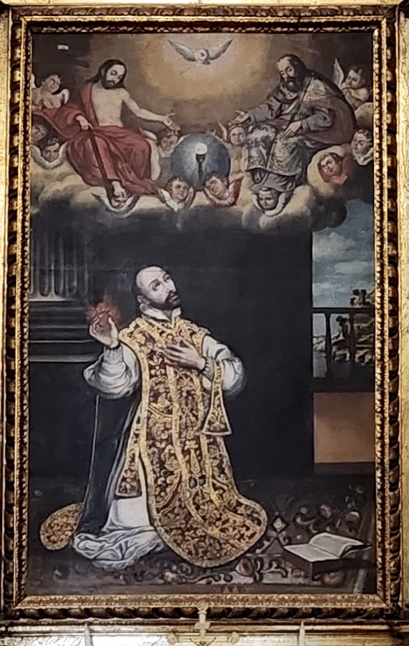 San Ignacio de Loyola ordenado como sacerdote ofreciendo su corazón a la Santísima Trinidad.
